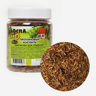 Сушеные насекомые являются идеальным источником высококачественного животного белка для всех смешанных грызунов. Продукт улучшает иммунитет, усиливает пигментацию и способствует росту питомцев.