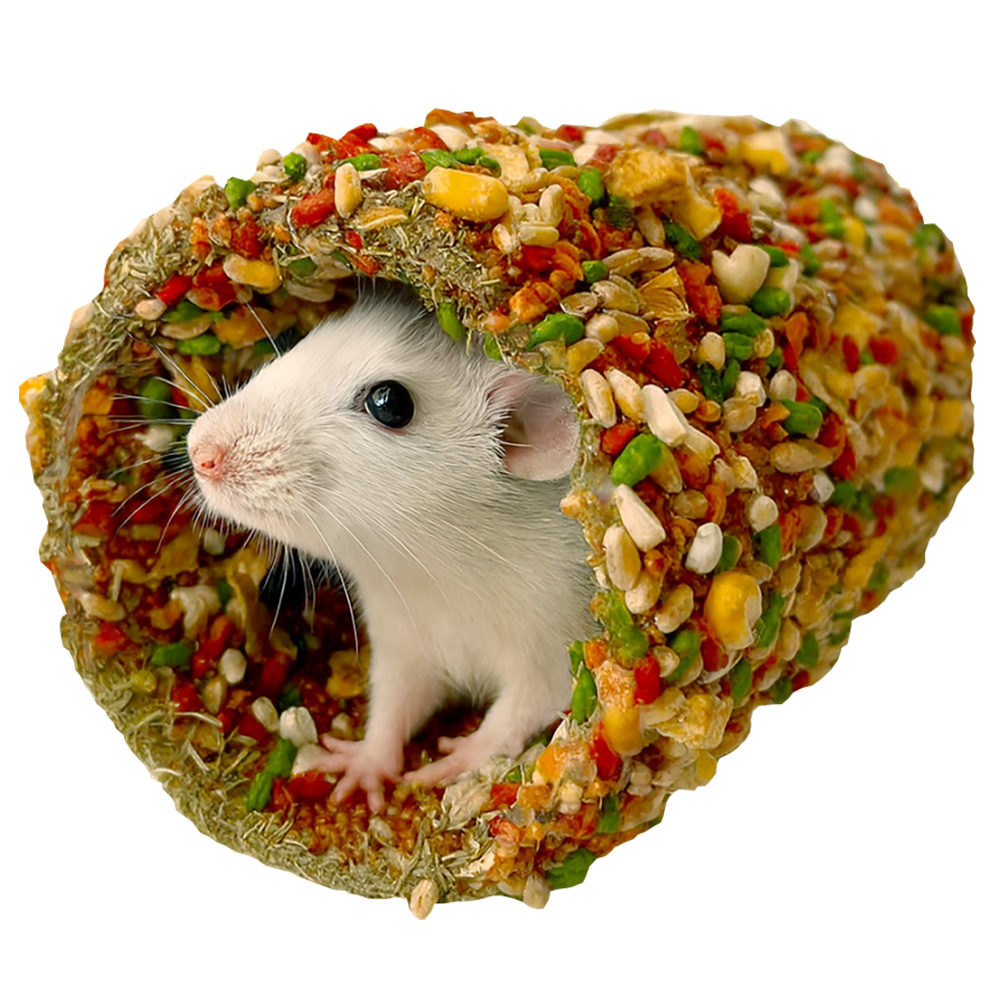 Лакомство «Домик-туннель» является полезным дополнением к основному рациону и содержит ингредиенты, которые не входят в состав повседневного корма. Оно дарит вкусовое разнообразие, и каждое знакомство с ним становится для грызуна увлекательным приключением. Благодаря твёрдой структуре усиливается жевательная активность, что способствует правильному стачиванию зубов, уходу за ротовой полостью и развитию челюстной мускулатуры.