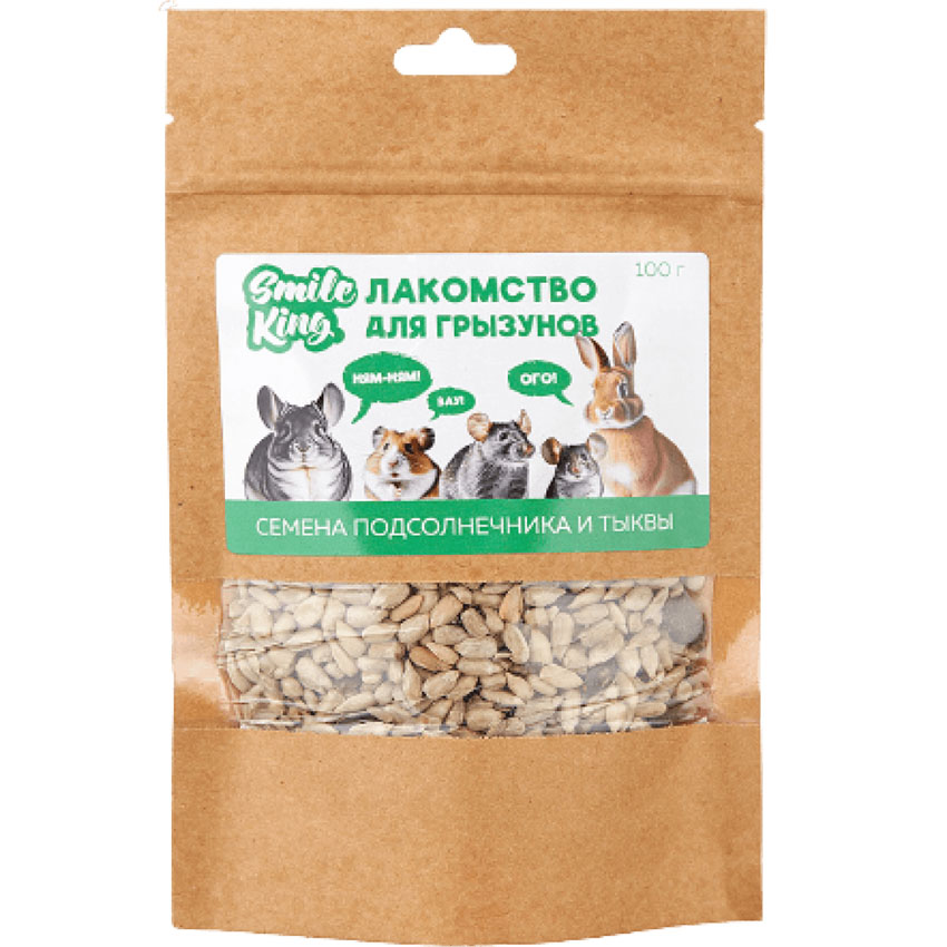 Натуральное лакомство Smile King «Семена подсолнечника и тыквы» 100 г — это идеальное решение для ваших питомцев. Отборные семена обеспечат здоровое витаминизированное питание, а вам подарят уверенность в надёжности премиум-продукта. Без ГМО, искусственных добавок, красителей и консервантов.