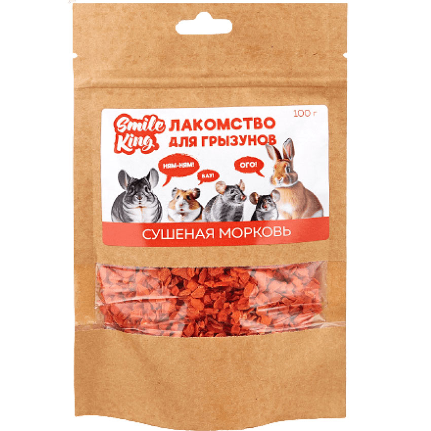 Натуральное лакомство Smile King «Сушеная морковь» 100 г — это идеальное решение для ваших питомцев. Хрустящие кусочки сушеной моркови обеспечат здоровое витаминизированное питание, а вам подарят уверенность в надёжности премиум-продукта. Без ГМО, искусственных добавок, красителей и консервантов.