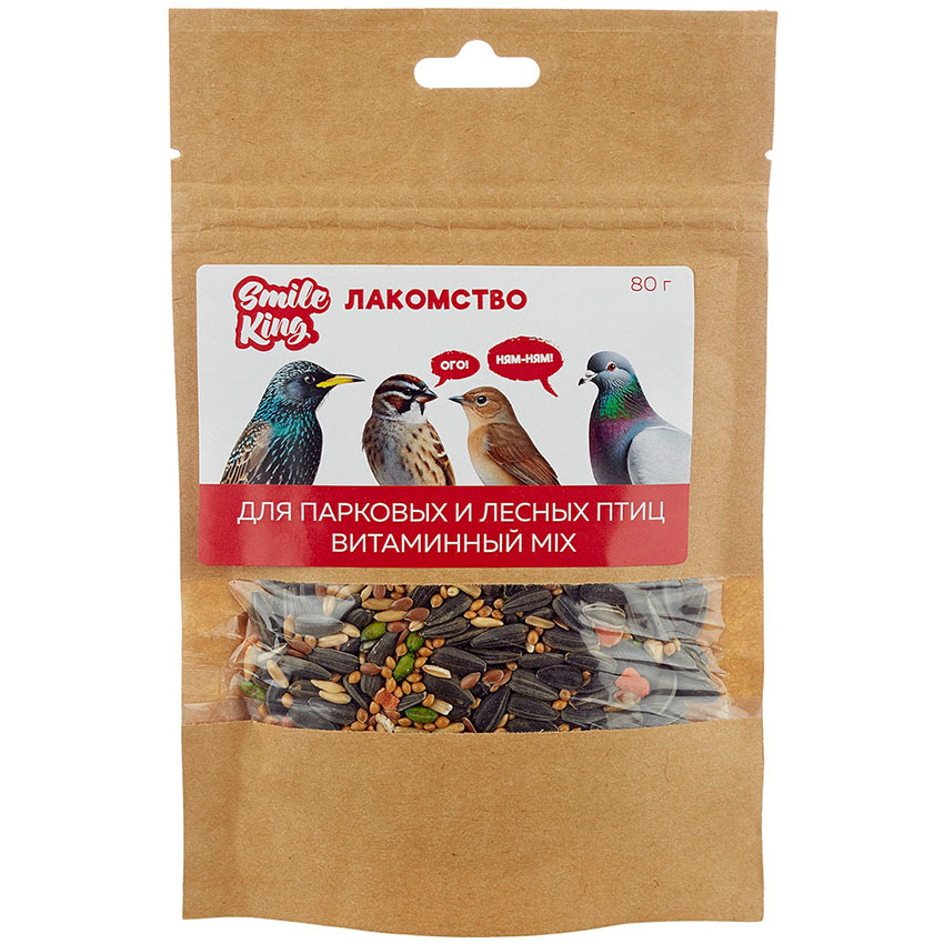 Натуральное лакомство Smile King «Витаминный MIX» 80 г — это идеальное решение для подкормки парковых и лесных птиц. Сбалансированная зерновая смесь обеспечит пернатым здоровое витаминизированное питание, а вам подарит уверенность в надёжности премиум-продукта. Без ГМО, искусственных добавок, красителей и консервантов.