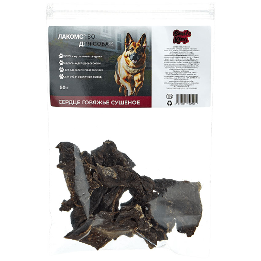 Натуральное лакомство Smile King «Сердце говяжье сушёное» 50г — это идеальное решение для ваших питомцев. Субпродукт высшего качества, высушенный по специальной технологии, обеспечит здоровое витаминизированное питание, а вам подарит уверенность в надёжности премиум-продукта. 100% натуральный продукт без красителей, консервантов и усилителей вкуса.