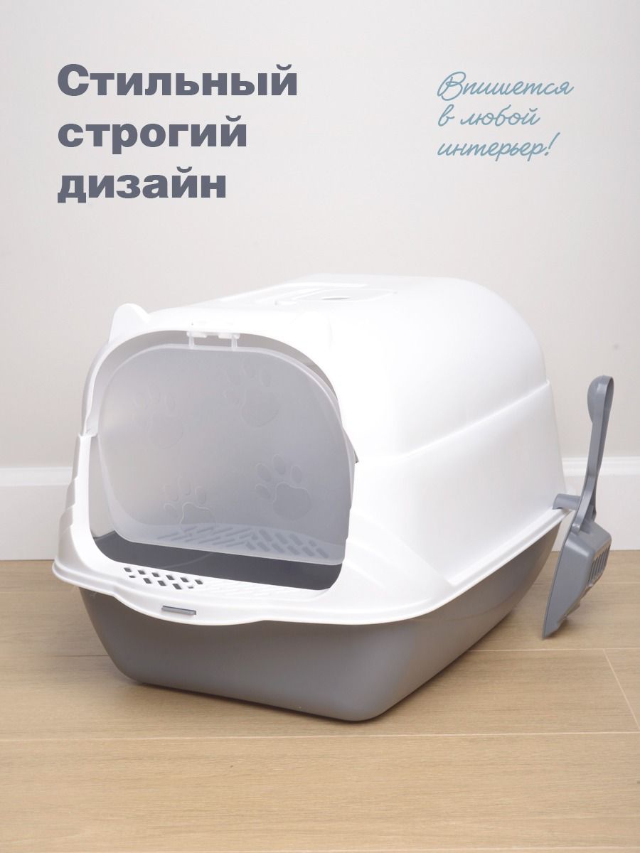 Закрытая конструкция помогает предотвратить рассеивание наполнителя, а также защищает от запахов, что особенно важно для домашних животных. Лоток легко открывается и закрывается, что делает процесс ухода быстрым и удобным. Совок, входящий в комплект, позволит вам поддерживать чистоту с минимальными трудозатратами, обеспечивая легкость в уходе за туалетом.