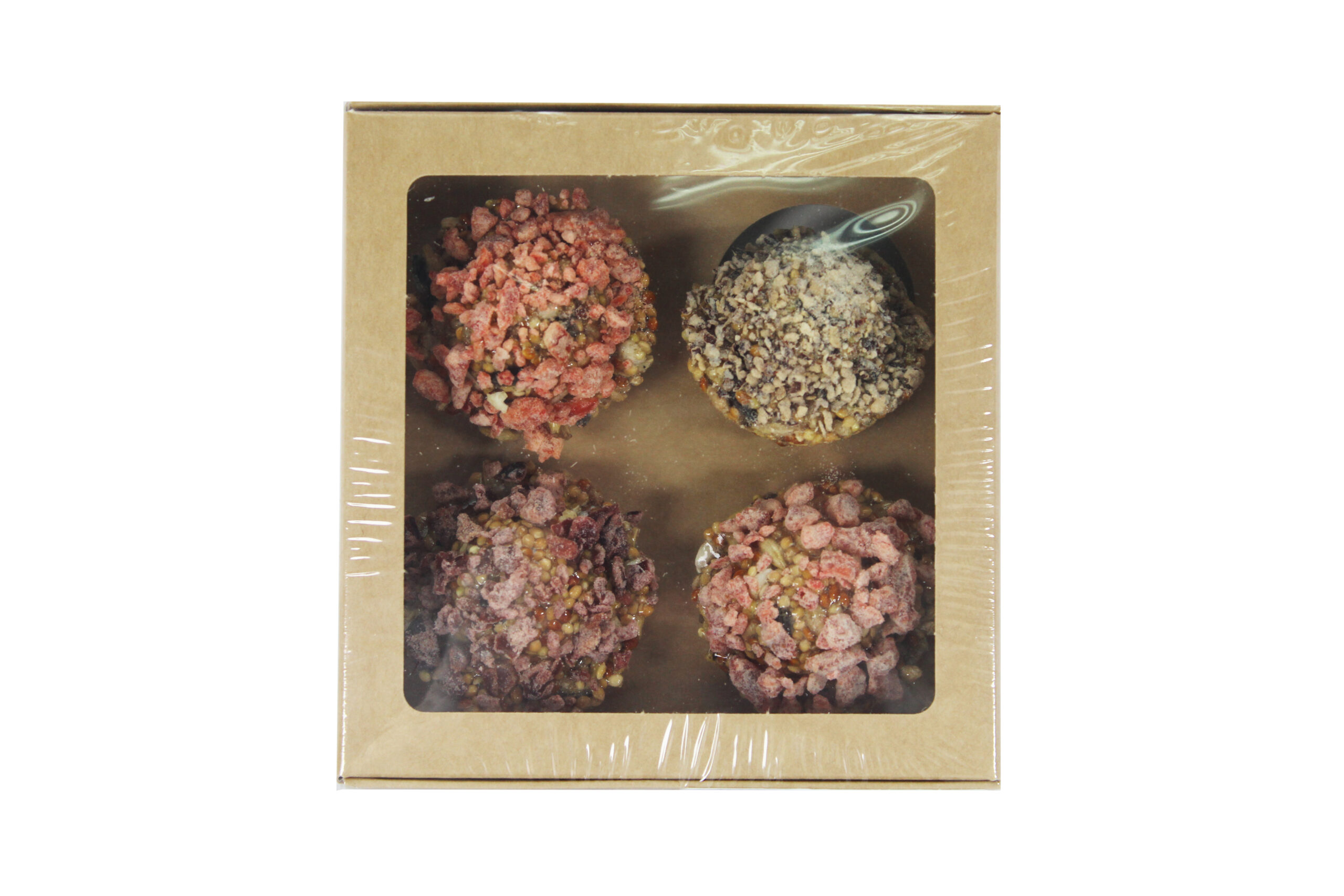 Состав : просо желтое, просо красное, пшеница, ячмень, овёс, подсолнечник, мёд, сафлор, горох, виноград, вишня, клубника, клюква