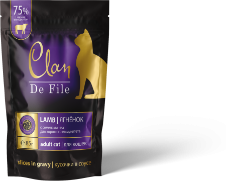 Clan DeFile паучи — это кусочки в соусе, в составе которого 75% мясных ингредиентов в каждом кусочке. Без искусственных консервантов, усилителей вкуса и ароматизаторов. Широкая линейка, в составе которой овощи, травы и ягоды. В составе высококачественные мясо и субпродукты отечественного производства, прошедшие тщательный контроль качества.