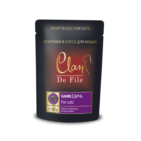 Clan De File влажный корм для взрослых кошек всех пород «Дичь гриль в соусе» — это полноценное питание для вашего питомца. Мясные ломтики в нежном ароматном соусе для усатых гурманов. В составе высококачественные мясо и субпродукты, прошедшие тщательный контроль качества. Натуральный состав: без искусственных консервантов, усилителей вкуса и ароматизаторов .