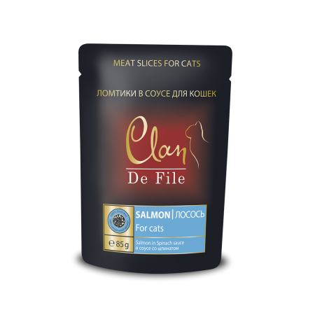 Влажный полнорационный корм для кошек Clan — это идеальное питание для вашего питомца. Паучи содержат аппетитные кусочки лосося со шпинатом в соусе, обладающие отличным вкусом и ароматом. В составе высококачественные мясо, рыба и субпродукты отечественного производства, прошедшие тщательный контроль качества. Натуральный состав: без искусственных консервантов, усилителей вкуса и ароматизаторов.
