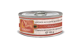 Консервированный полнорационный корм для кошек Clan — это идеальное питание для вашего питомца. Консервы изготовлены из высококачественного мясного сырья. Рецептуры кормов созданы с учетом физиологических особенностей животных. Не содержит сои, ГМО и искусственных ароматизаторов.
