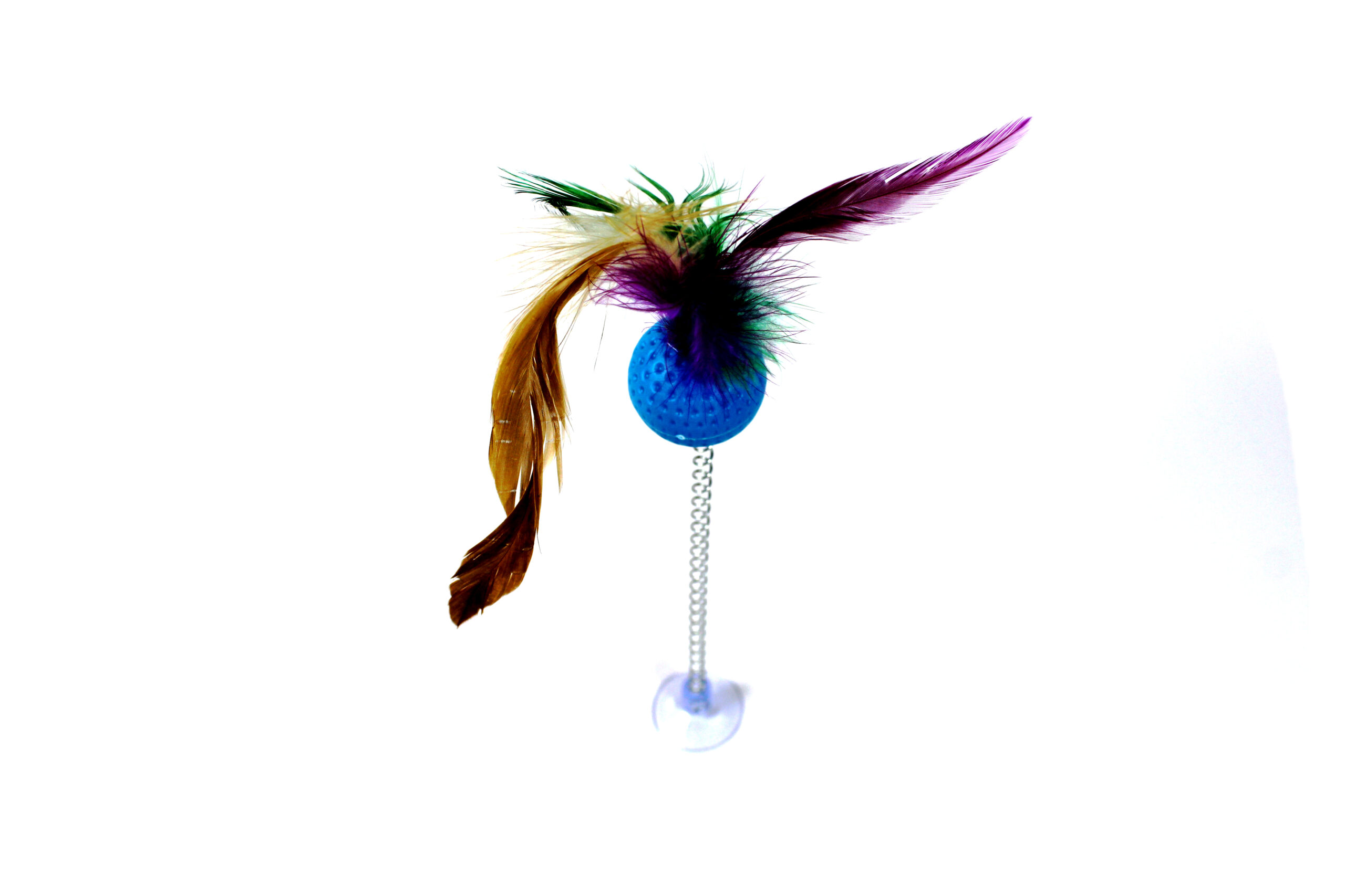 Дразнилка шар с перьями на пружине с присоской 30 см СТ2304091