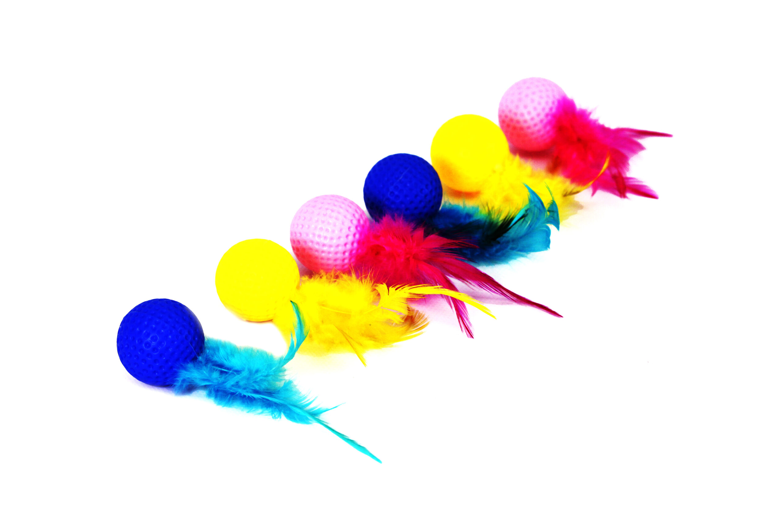 Игрушка для кошек «Мяч зефирный с перьями». Дразнилка 4 см 09213/1