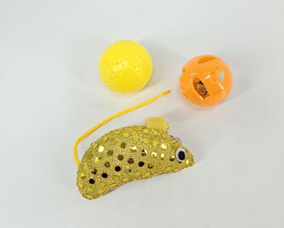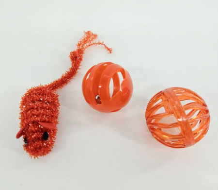 D-set 23 Набор игрушек для кошек «Чистый котик» 2мячика, 1 мышь пластик, текстиль