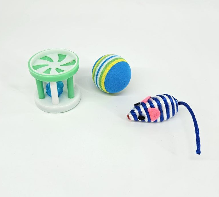 Набор игрушек для кошек «Чистый котик» 1мяч, 1 мышь, 1 цилиндр пластик, текстиль D-set 13