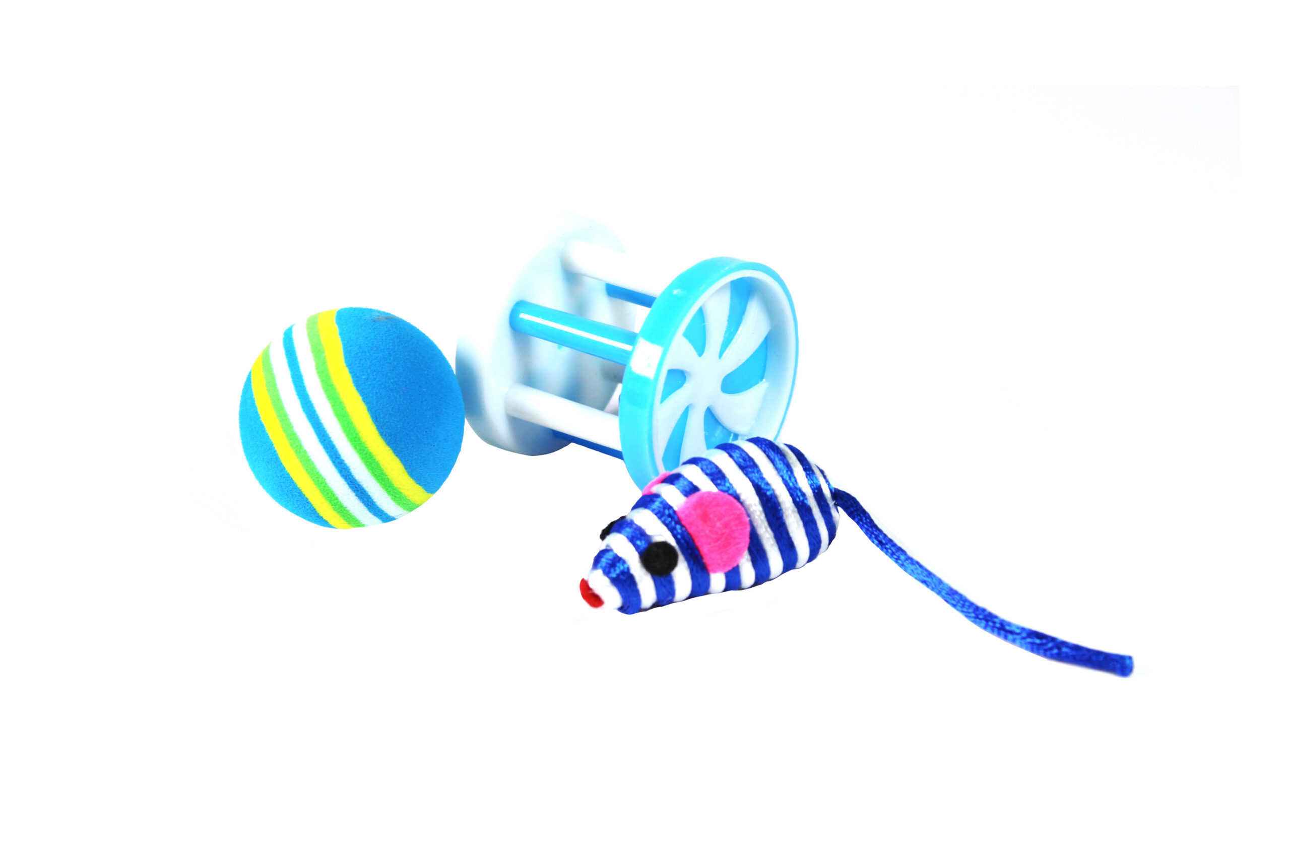 Набор игрушек для кошек «Чистый котик» 3 мячика, 1 мышь пластик, резина D-set 18