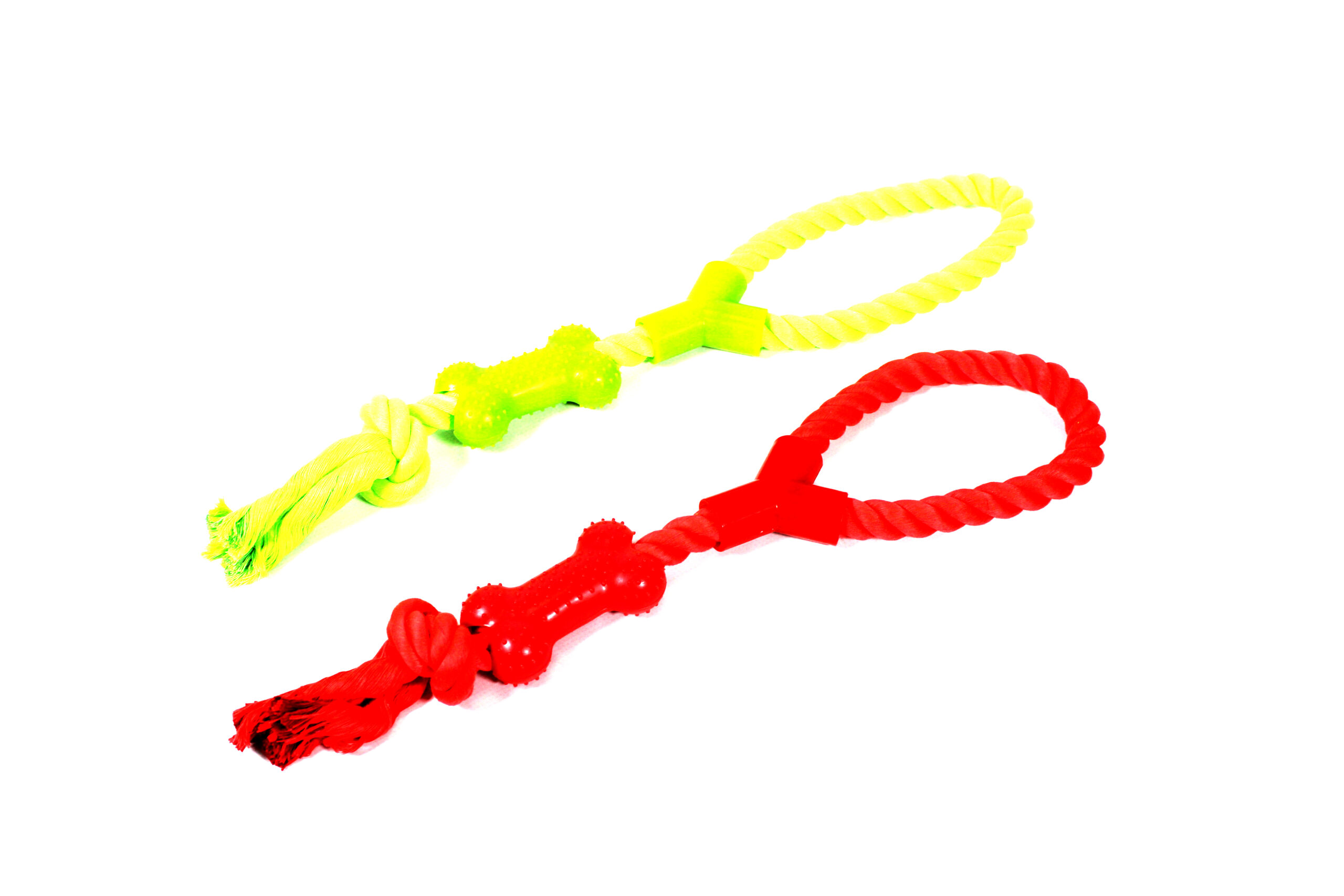 Верёвочная игрушка с пластиковой костью для домашних животных. 29 см HLTP 325