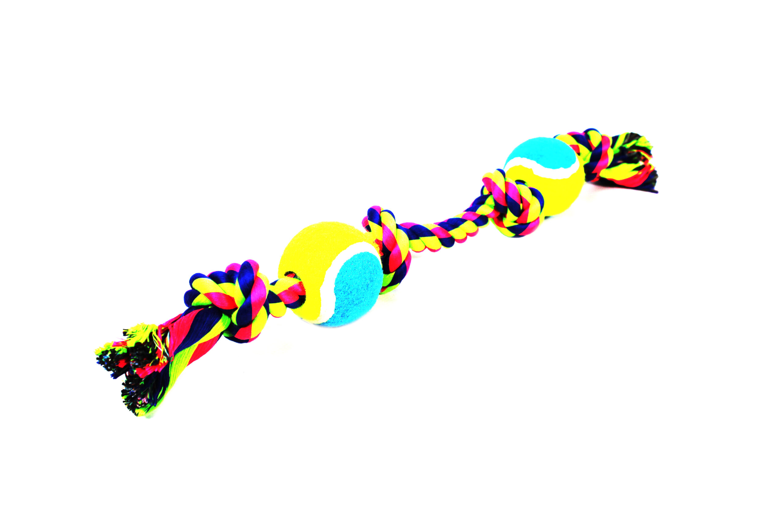 Верёвочная игрушка Канат c двумя теннисными мячами для домашних животных. Канат 50 см HLTP 19350